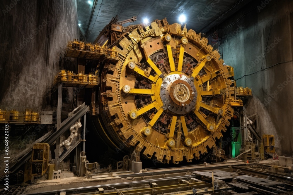 side view of tunnel boring machine with exposed gears, created with ...
