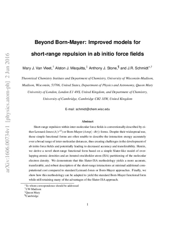 (PDF) Beyond Born-Mayer: Improved models for short-range repulsion in ...