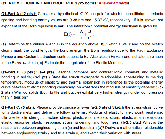 Solved Q1 . ATOMİC BONDING AND PROPERTIES (25 points; Answer | Chegg.com
