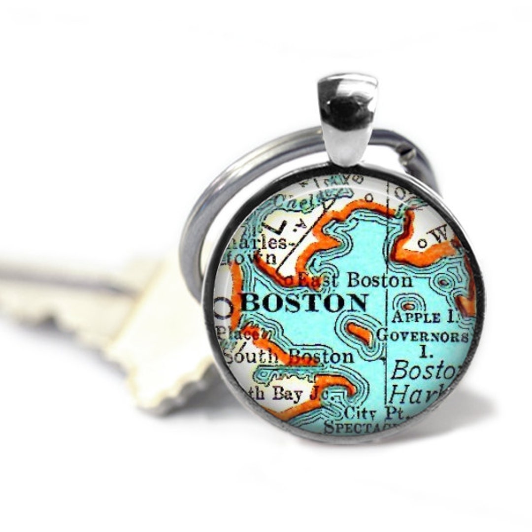 Boston Keychain, Custom Boston Map Key Chain, Customized Mens Keychain ...