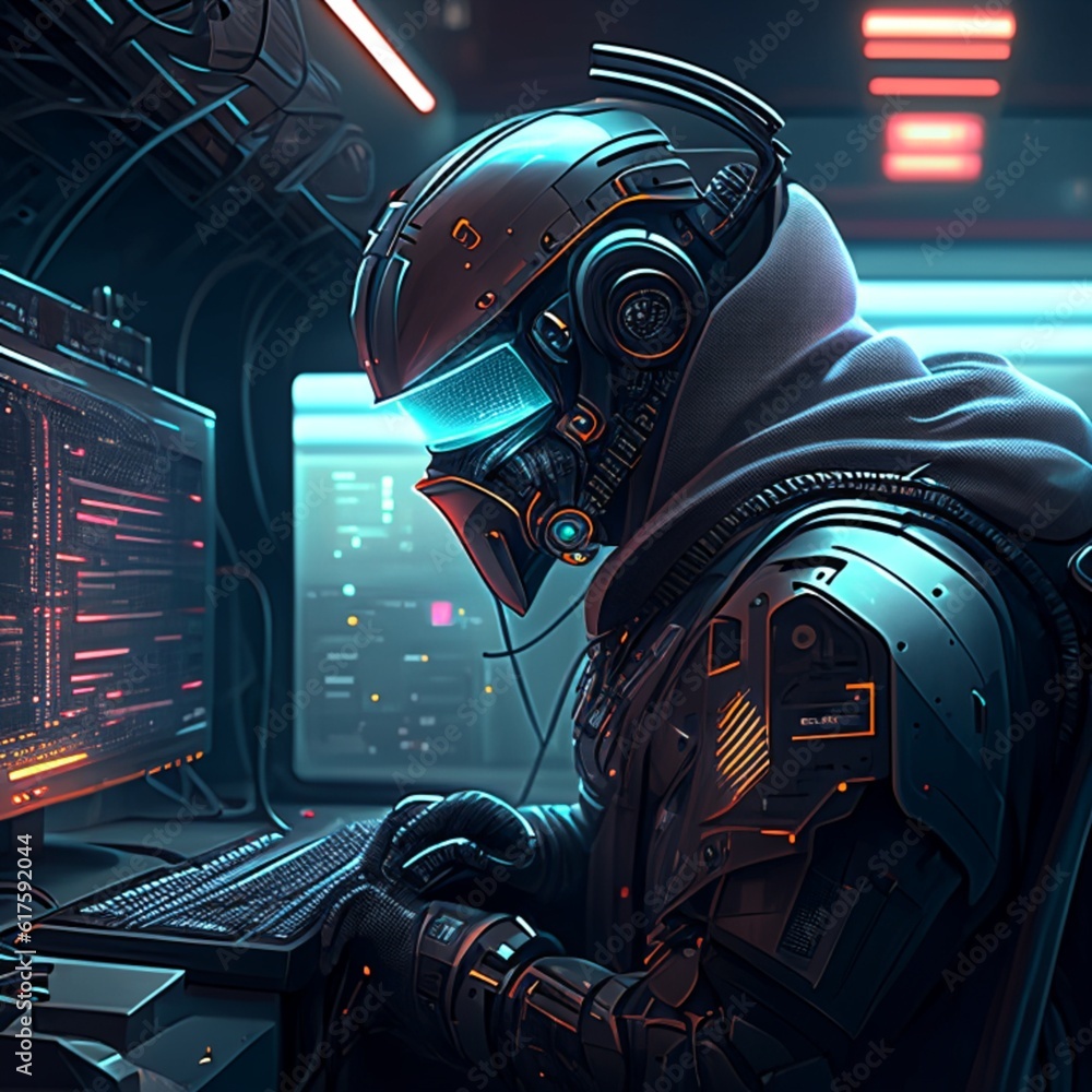 Hacker with Generative AI Algorithm Committing Cybercrime in Futuristic ...