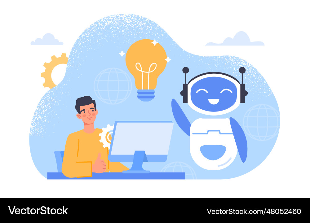 Man with chat bot concept Royalty Free Vector Image