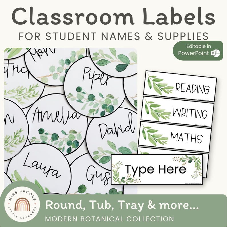 BOTANICAL Classroom Labels and Student Desk Plates Editable - Etsy UK