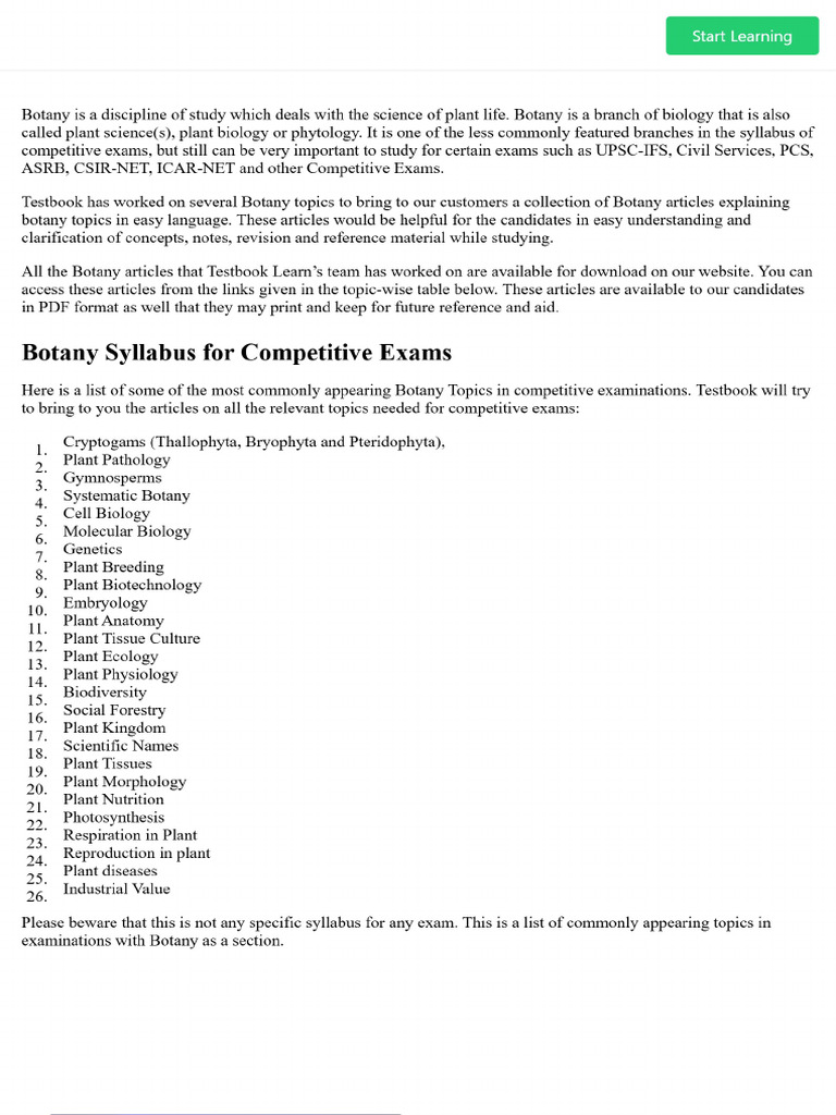 Botany Topics For Competitive Exams - Download Zoology PDFs Here | PDF