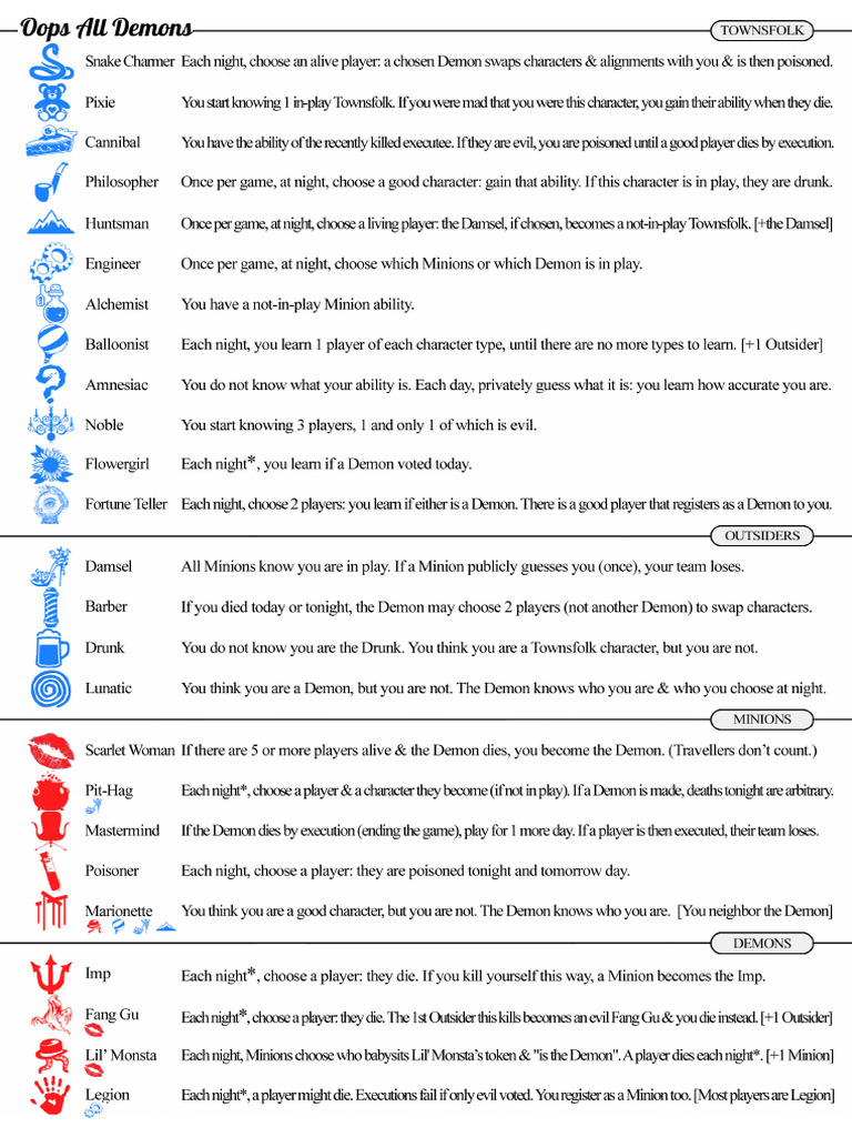 Blood On The Clocktower - Character Sheet | PDF | Demons