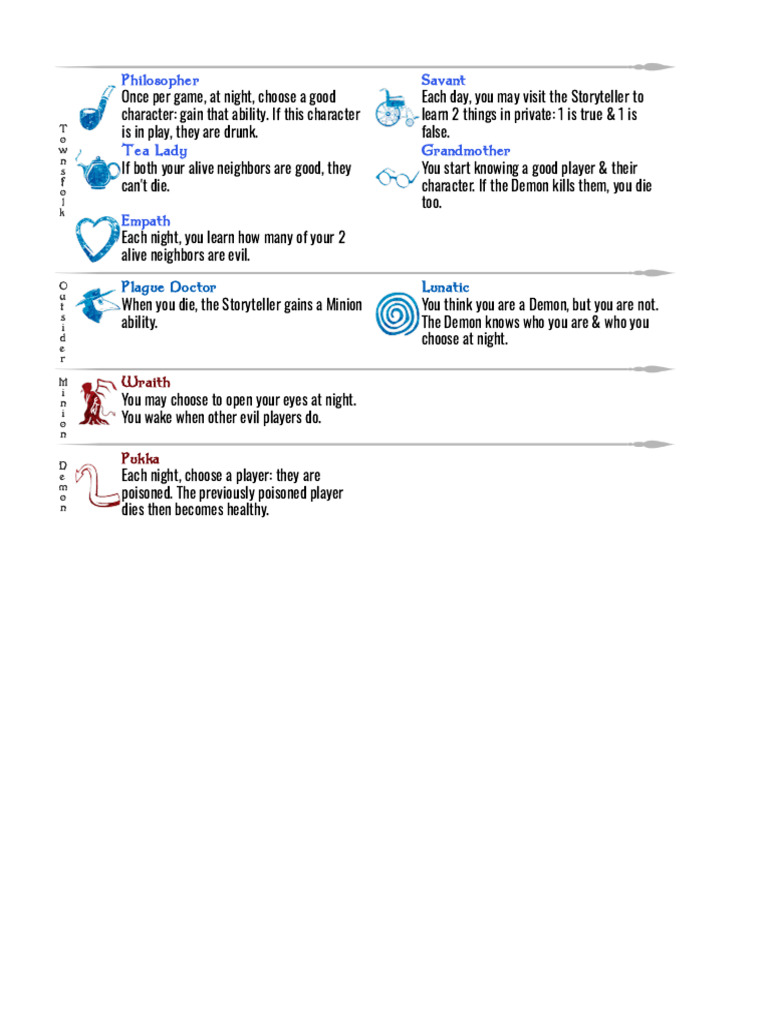 Blood On The Clocktower - Character Reference Sheet | PDF