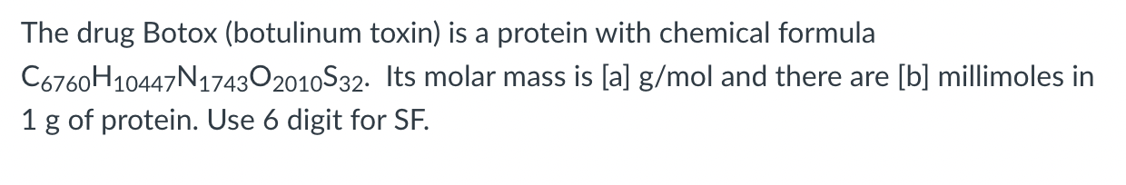 Solved The drug Botox (botulinum toxin) is a protein with | Chegg.com