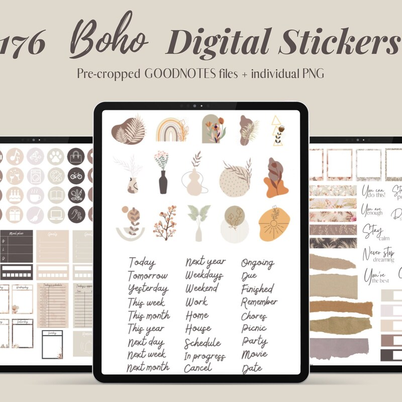 Boho Digital Sticker Sheet Png Graphic by Dreamwings Creations ...
