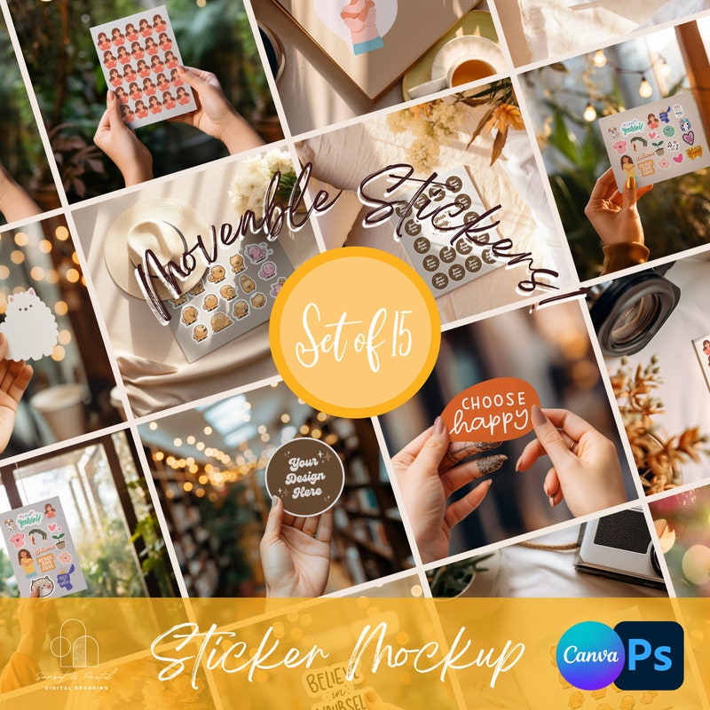 Set of 10 Sticker Mockup, Moveable Sticker Decal Mockup, Boho Style ...