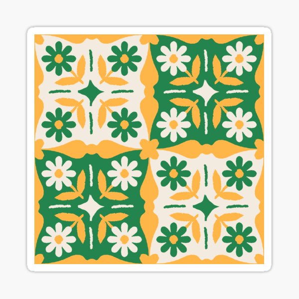 "colorful green and orange flowers tile pattern boho style" Sticker for ...