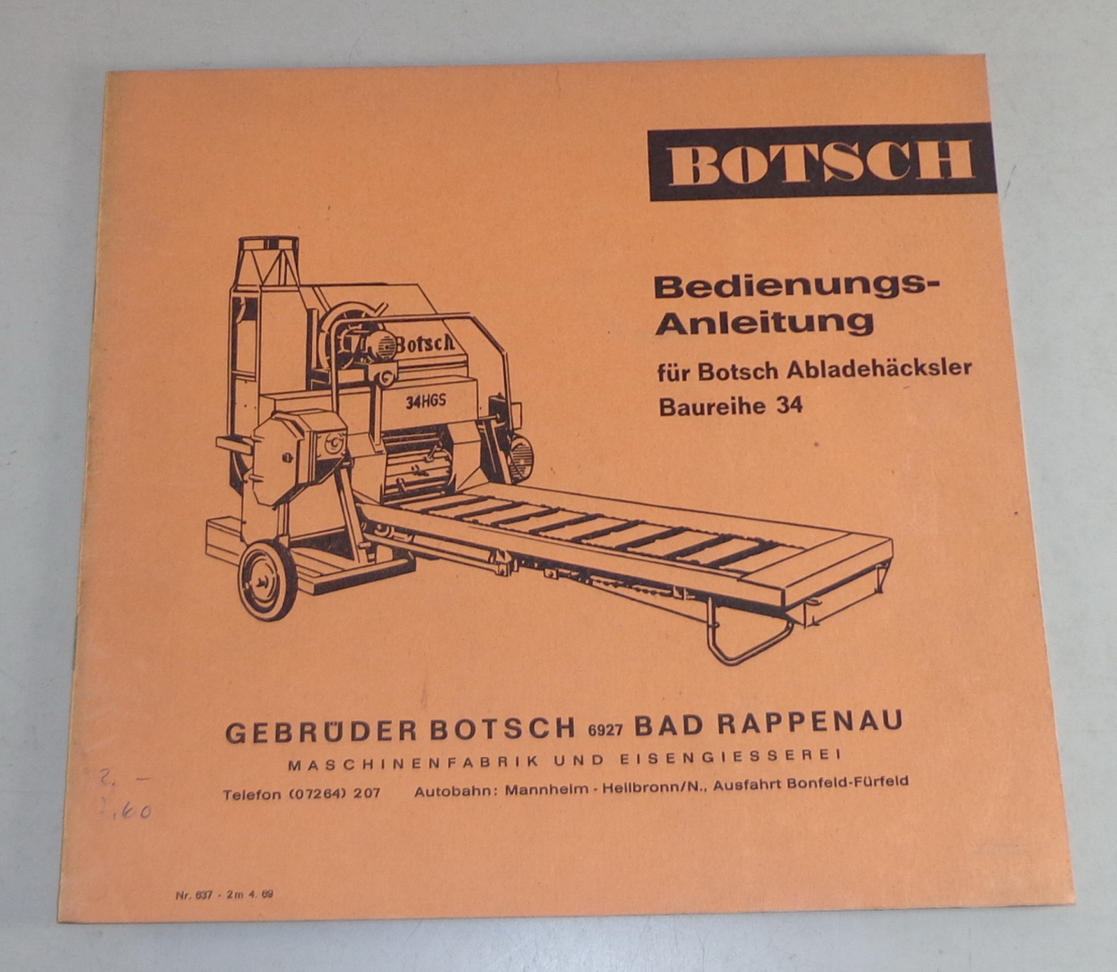Betriebsanleitung Botsch Abladehäcksler Baureihe 34 Stand 04/1969 | PK-Buch