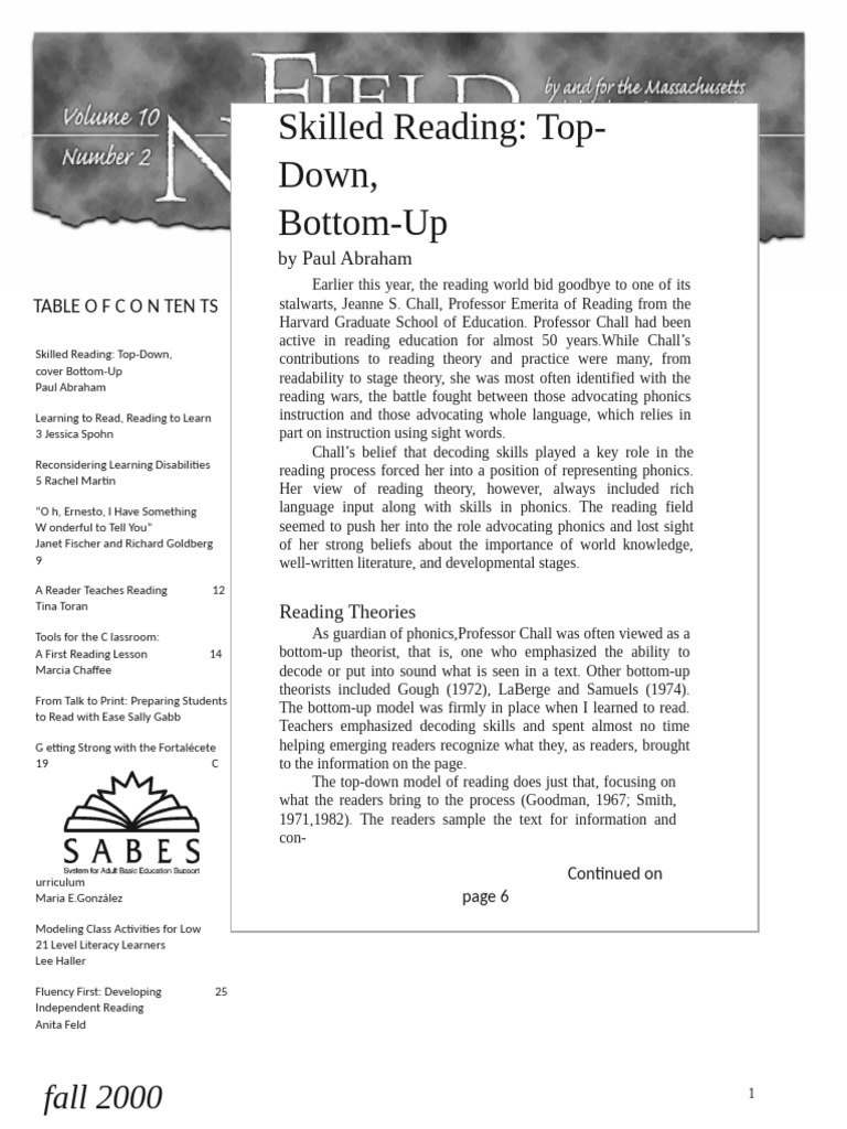 Materi. Skilled Reading Topdown-Bottom Up. 2001 | PDF | Reading ...