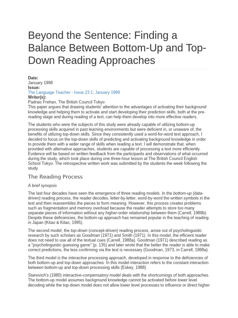 Bottom Up Top Down | PDF | Reading Comprehension | Top Down And Bottom ...