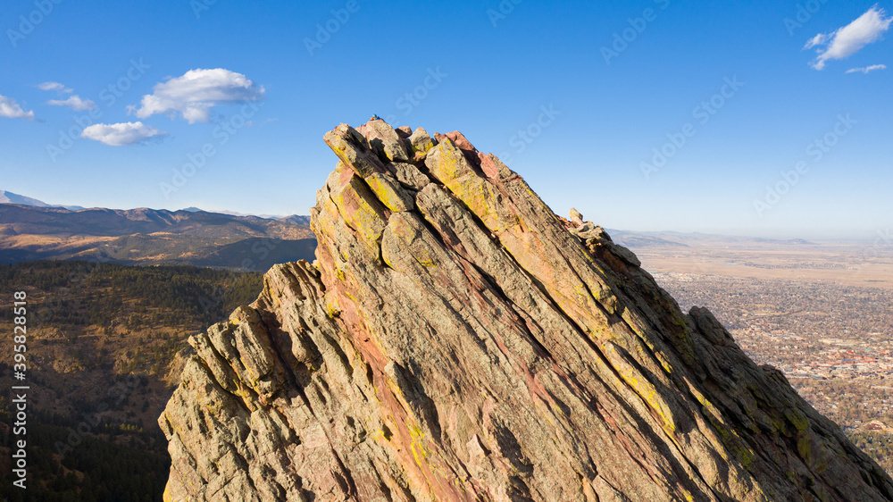 Drone photo of a flatiron in Boulder, Colorado. This aerial view shows ...