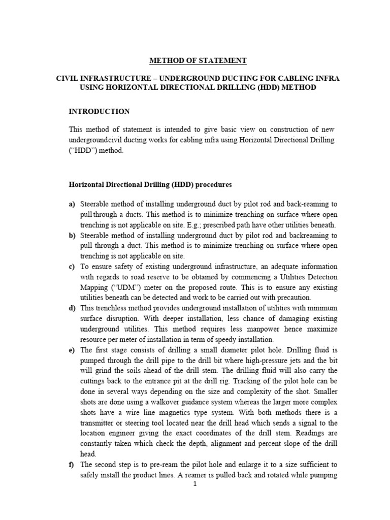 Method Statement of HDD | PDF | Drilling | Pipe (Fluid Conveyance)