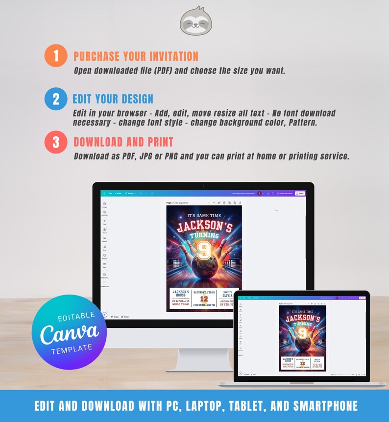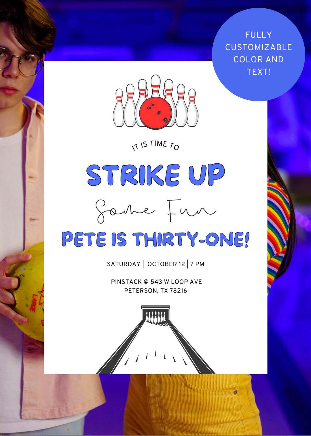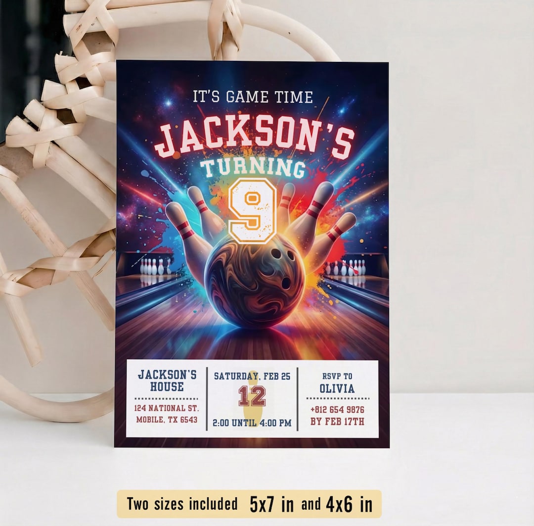 Editable Bowling Party Invitation | Customizable Colors | Birthday ...