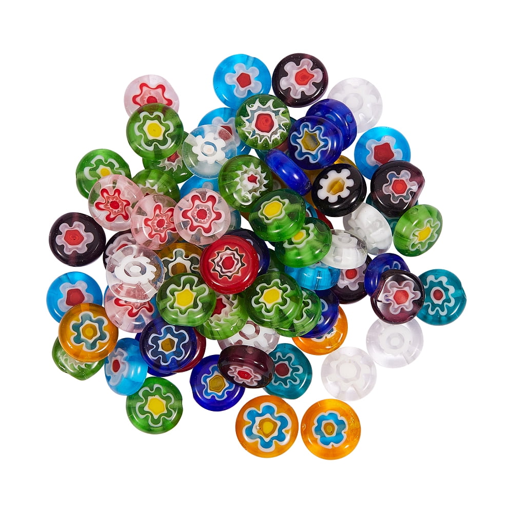 1 Box 2 Strands Handmade Millefiori Glass Beads Flat Round Mixed Color ...