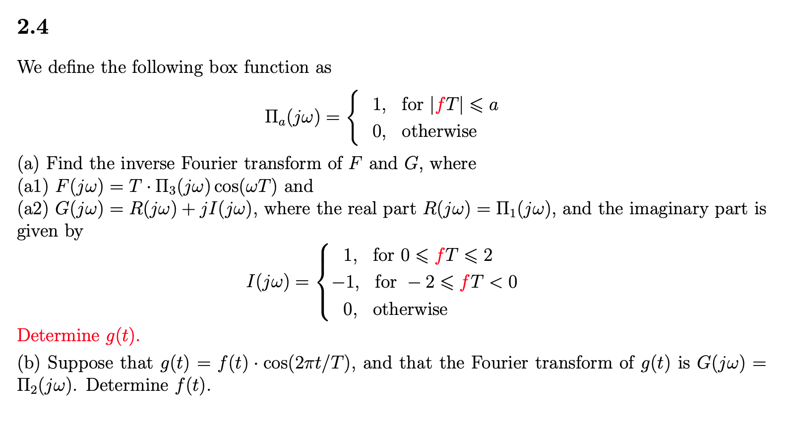 Solved We define the following box function as Πa(jω)={1,0, | Chegg.com