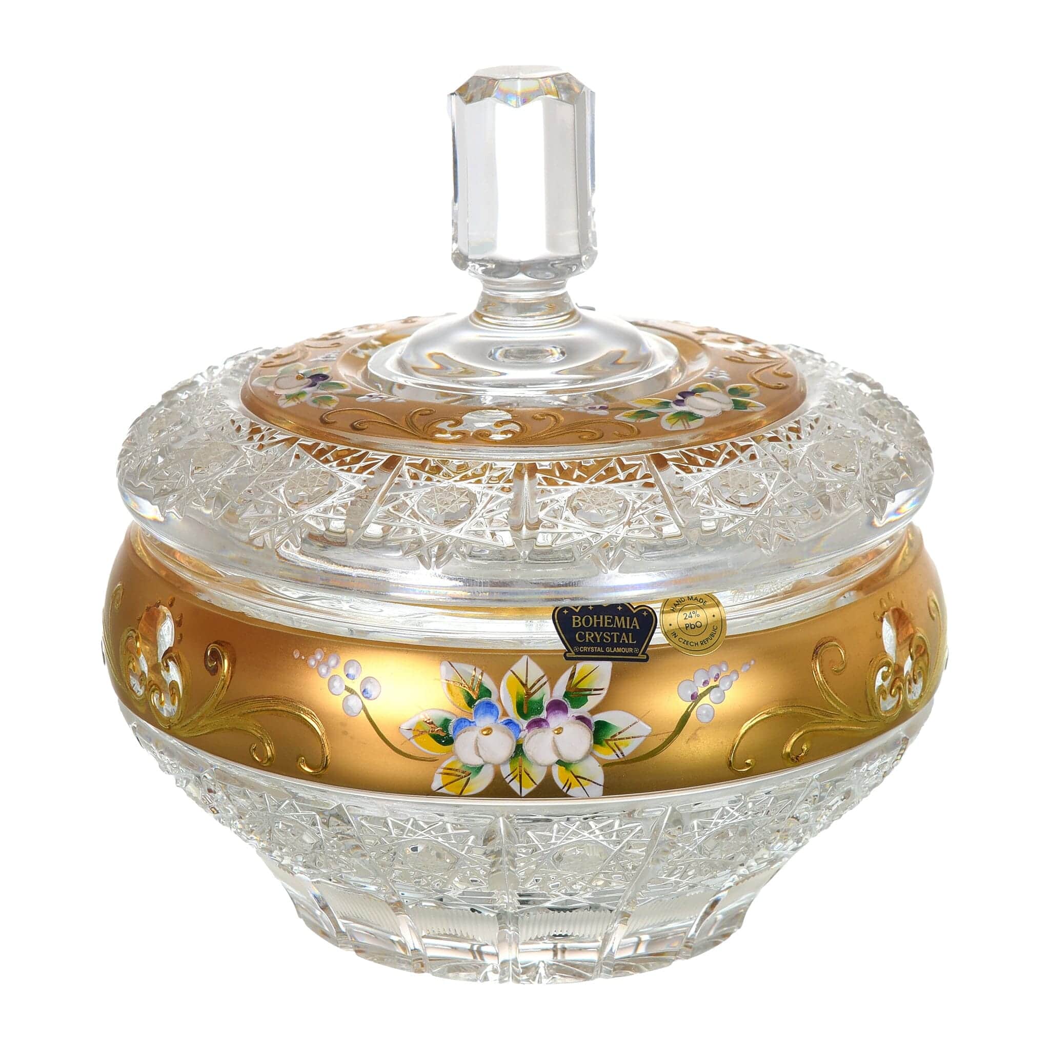 Bohemia Crystal - Round Crytal Box - Gold & Floral Design - 27x17cm