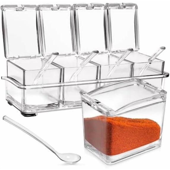 4-Cell Clear Seasoning Rack Spice Box, Storage Container Condiment Jars ...