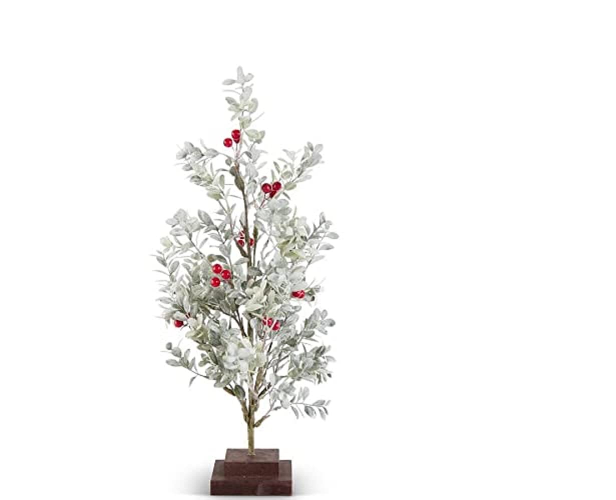 K&K Interiors 54880D Powdered Boxwood Tree with Red Berries, 19-inches ...