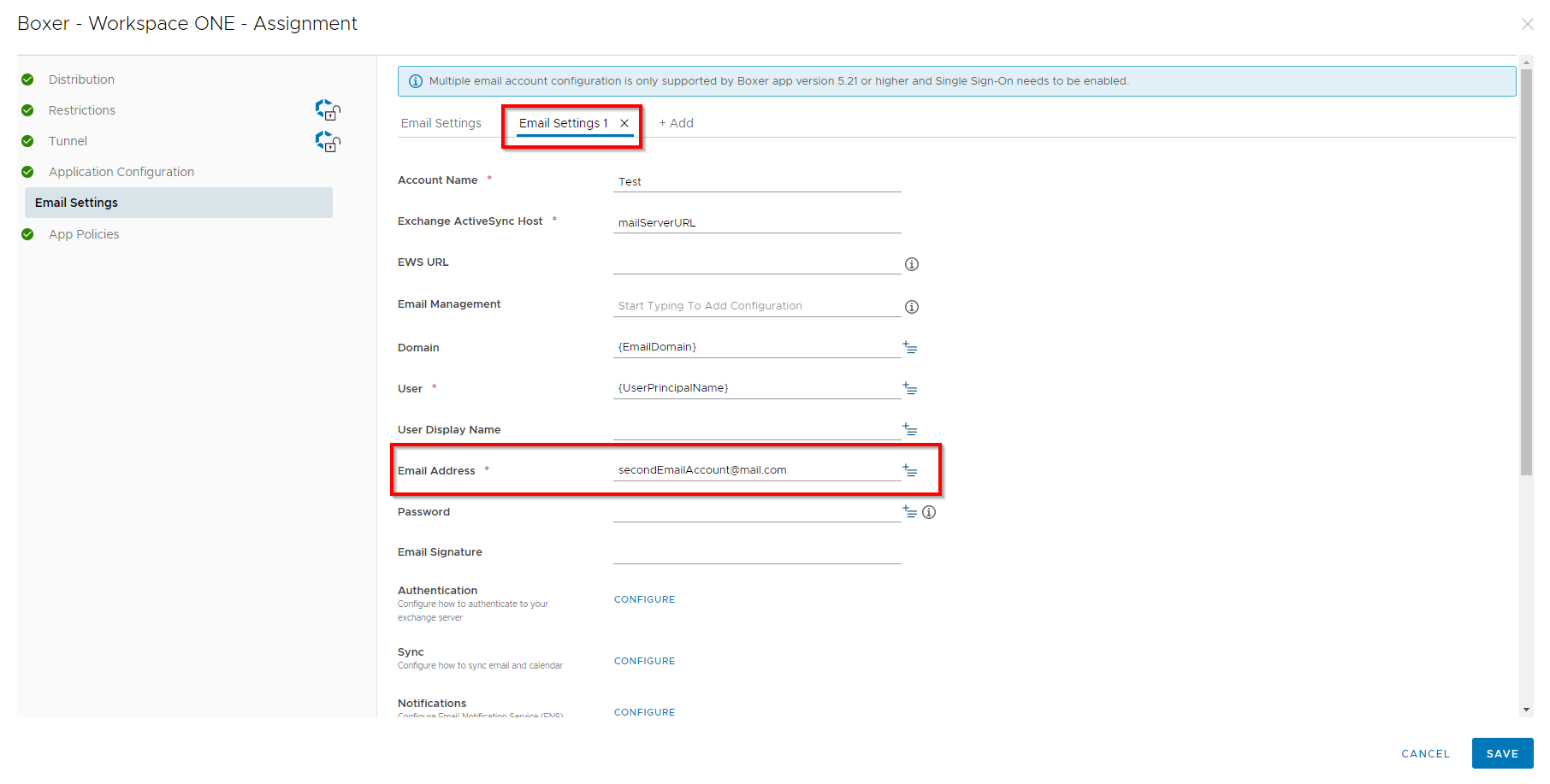 Add multiple managed accounts for Workspace ONE Boxer (82798)