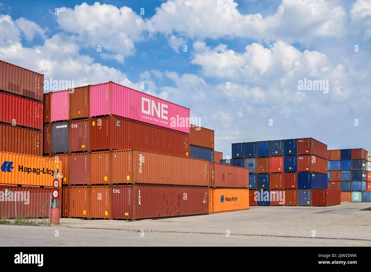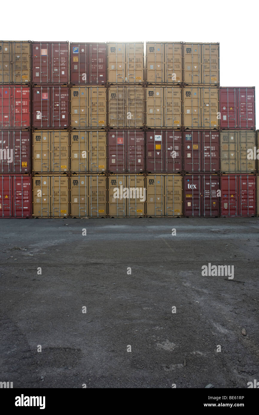 Stacked cargo containers in storage area of freight Stock Photo - Alamy