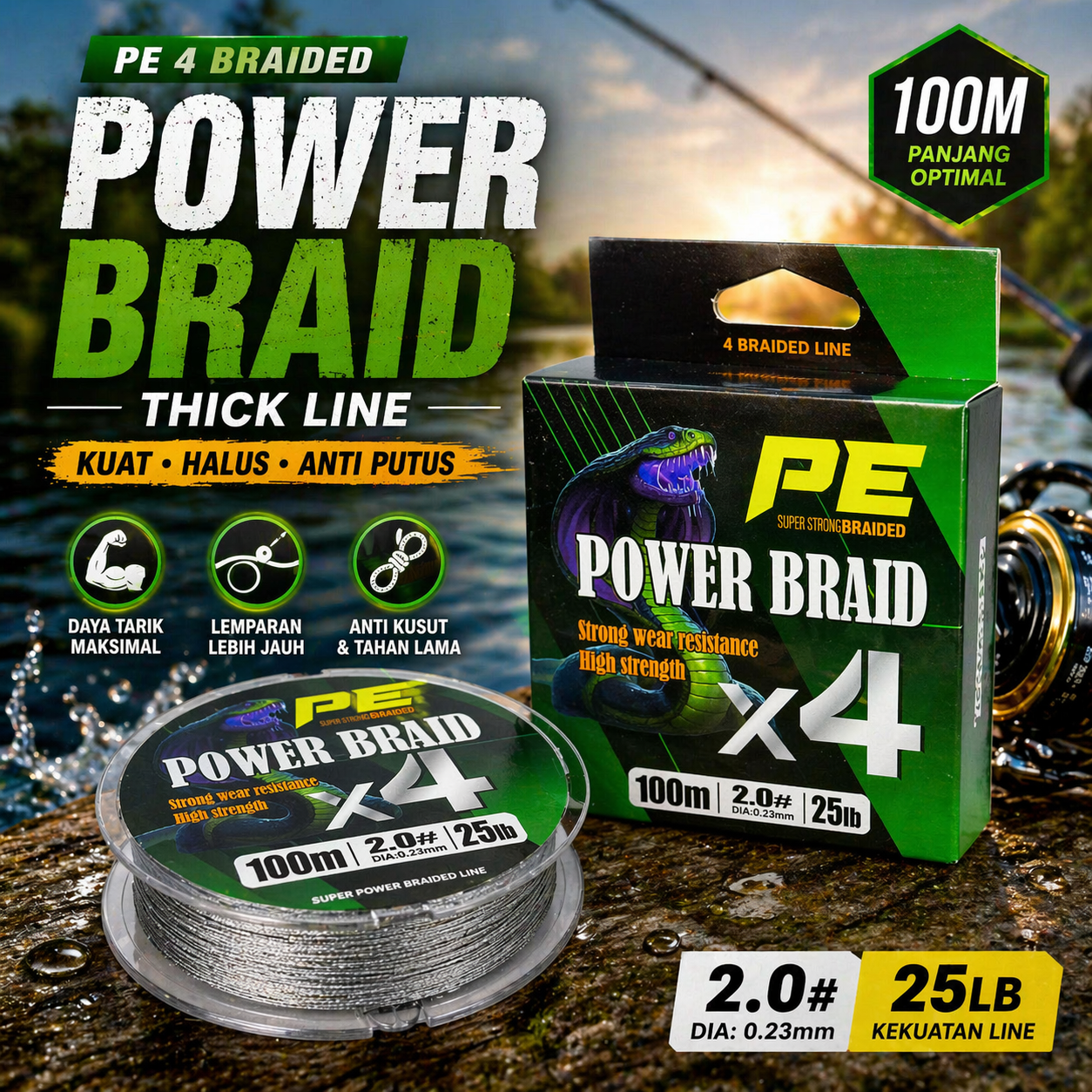 Dali Ma Senar Pancing PE 4 Braided Strand Fishing Line 100M 2.0 - X4 ...