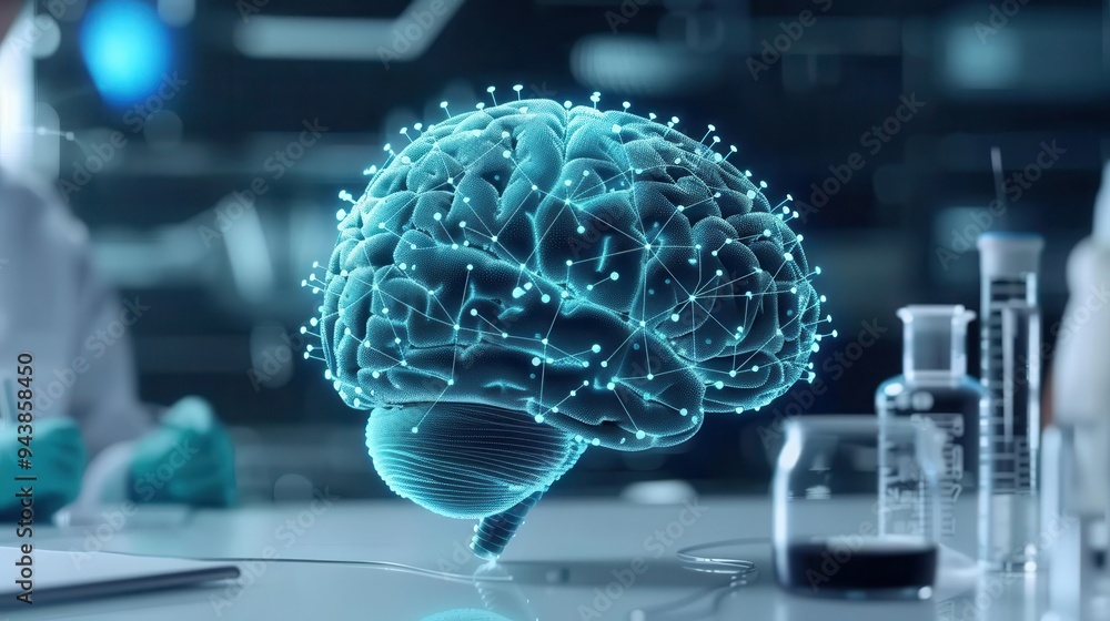 Brain connected to a network of sensors, sterile lab, real-time brain ...