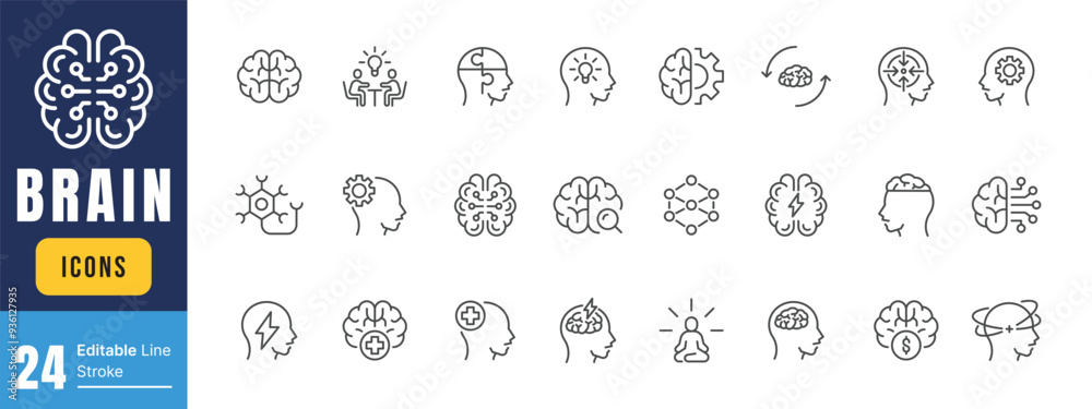 Set of Brain Related Vector Line Icons. Contains such Icons as mind ...