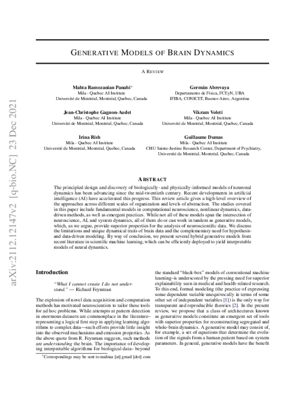 [PDF] Generative Models of Brain Dynamics