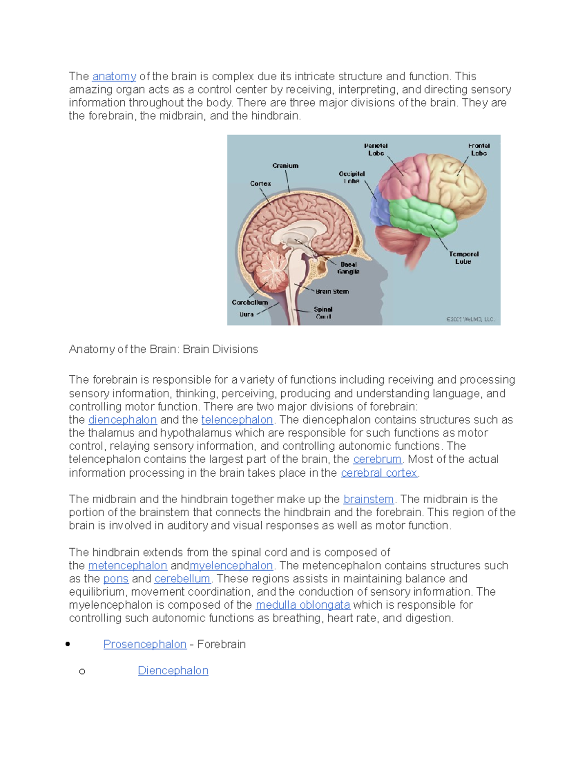 Anatomy of the brain - Lecture notes . - Anatomy of the brain Major ...