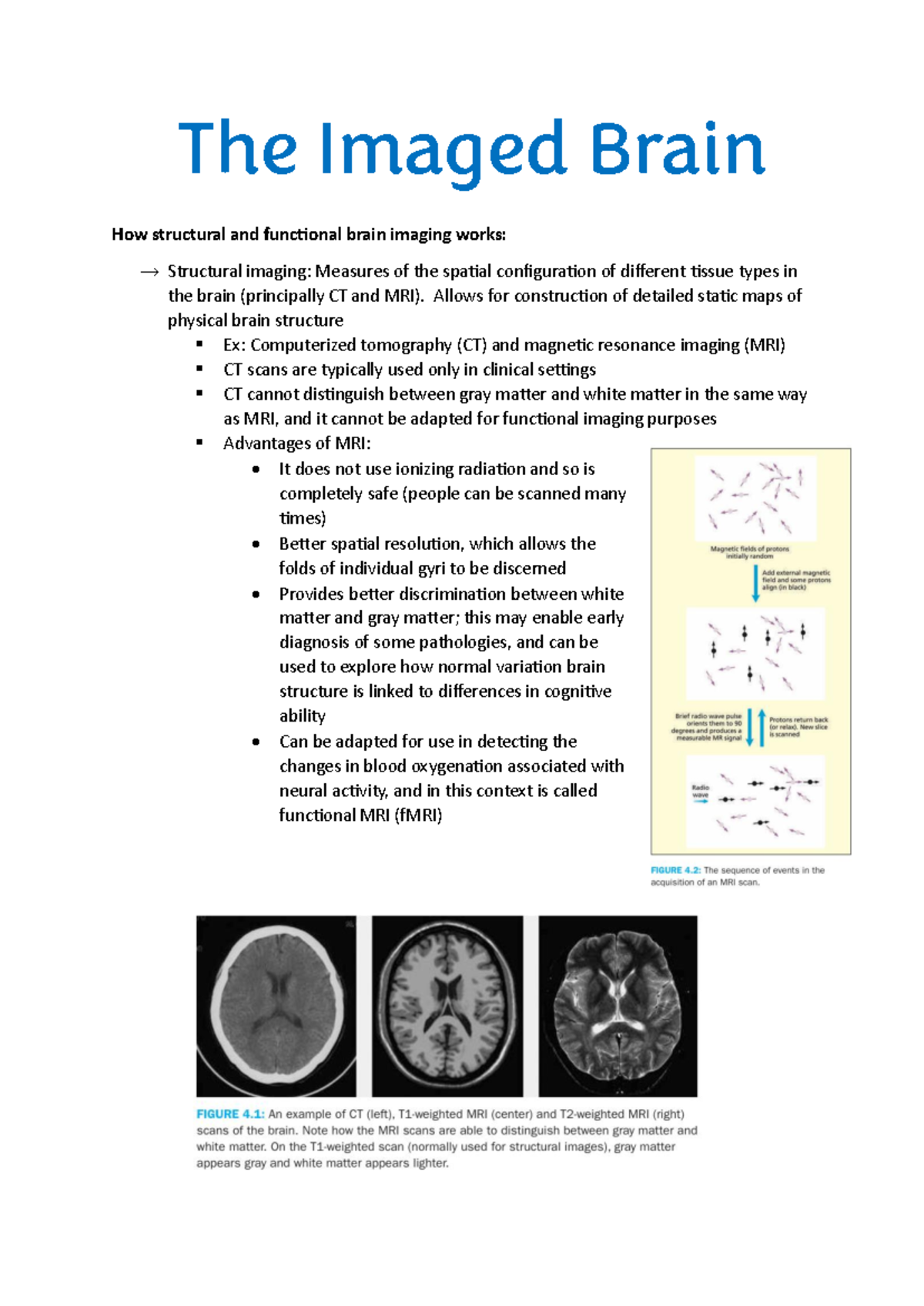 Structural and Functional Imaging of the Brain: Study Notes (PSY 305 ...