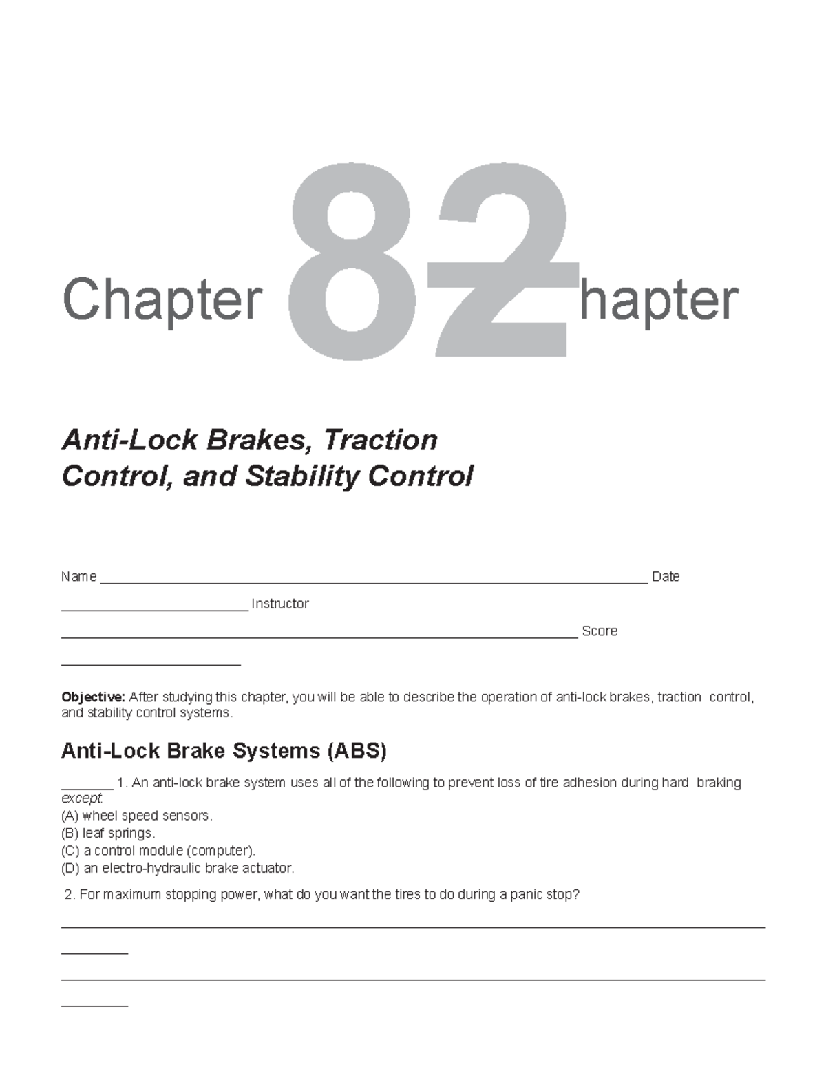 Chapter 82: Brakes, Traction Control & Stability Control Notes - Studocu