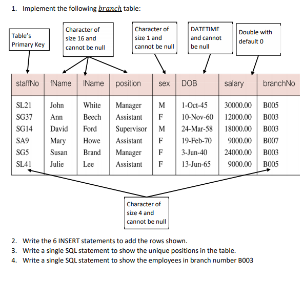 Solved Q1. Please write "create table" SQL code for "Branch" | Chegg.com