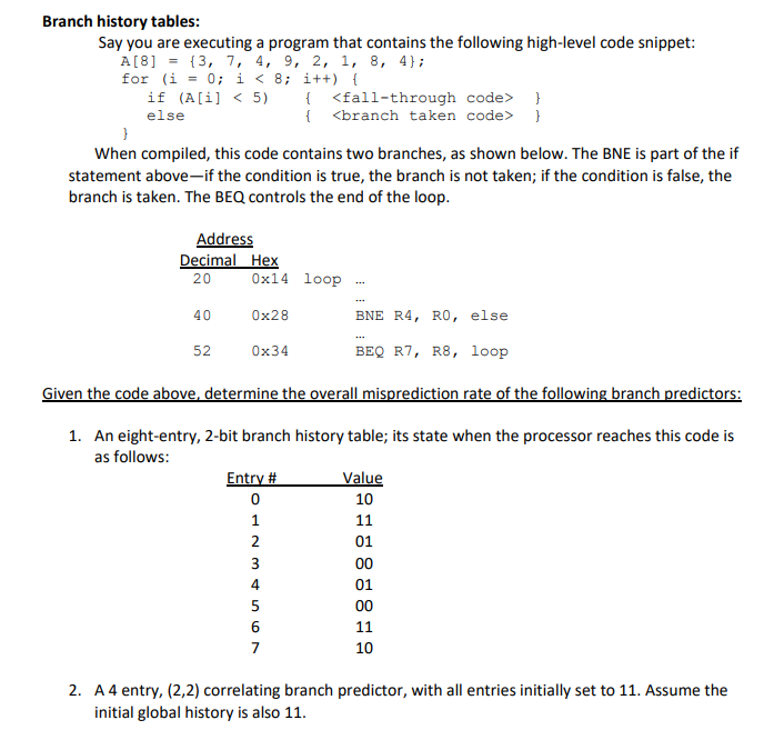 Solved Branch history tables: Say you are executing a | Chegg.com