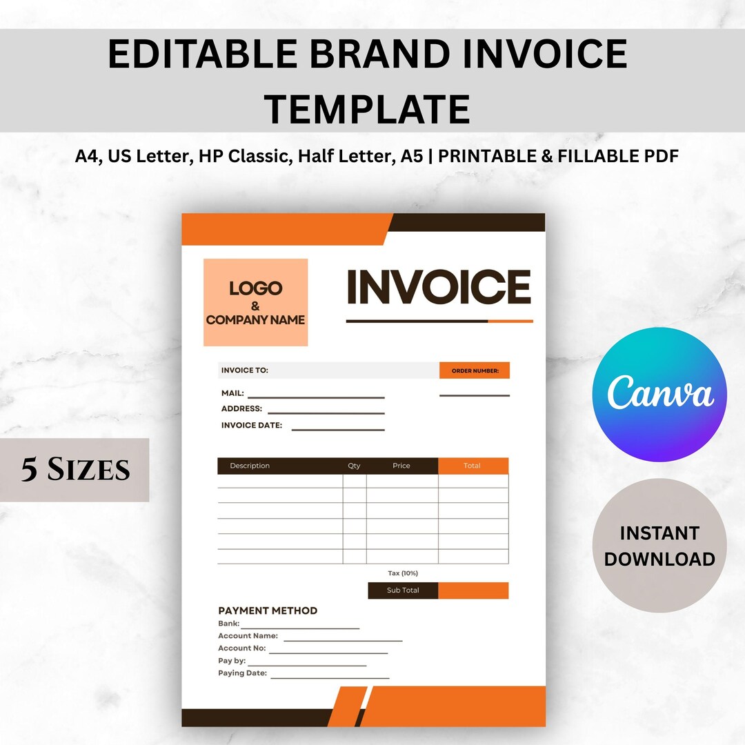 Invoice Template | Invoice Template Canva | Invoice Editable Canva - Etsy