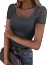 ANRABESS Womens Short Sleeve Shirts Scoop Neck Lace Going Out Tops Slim ...