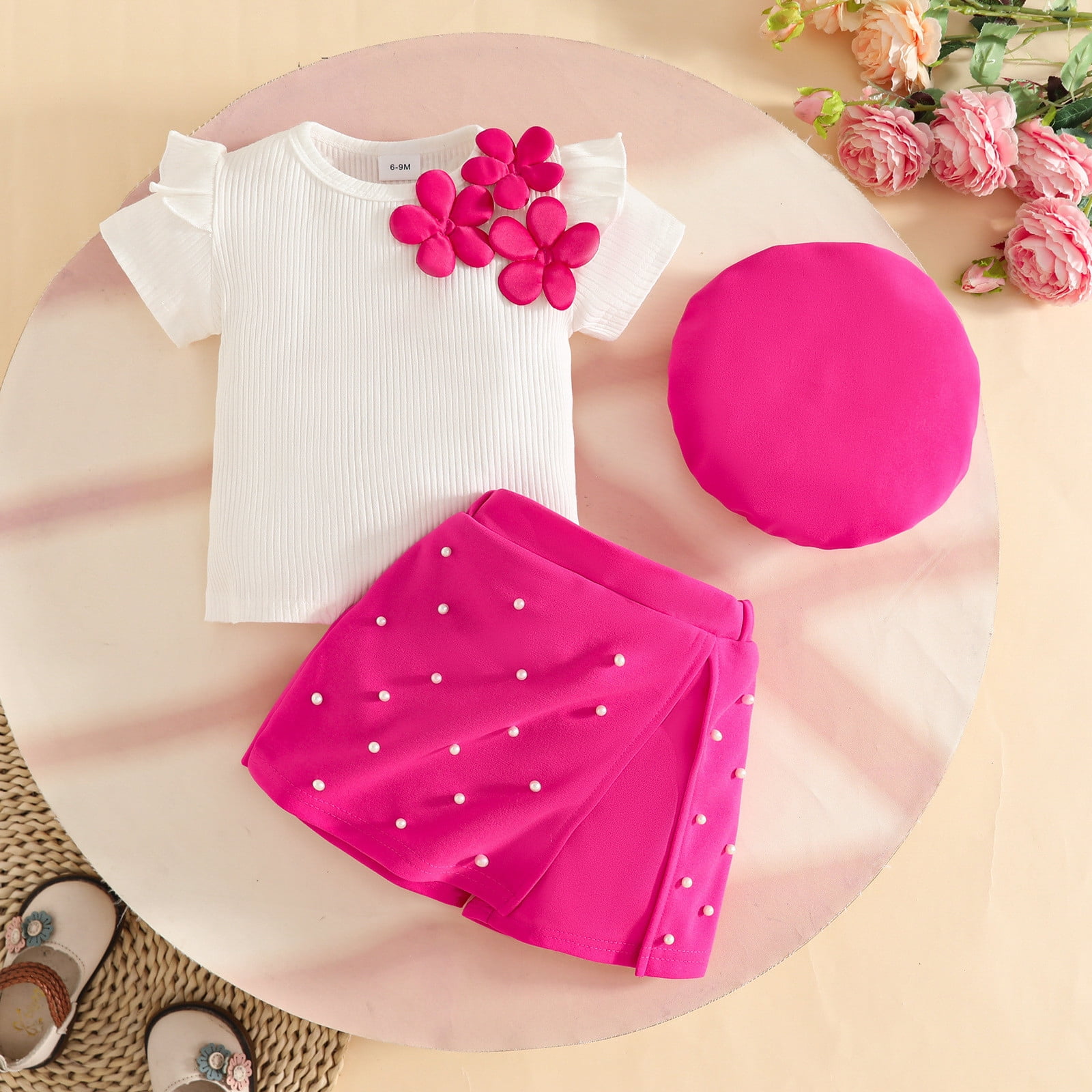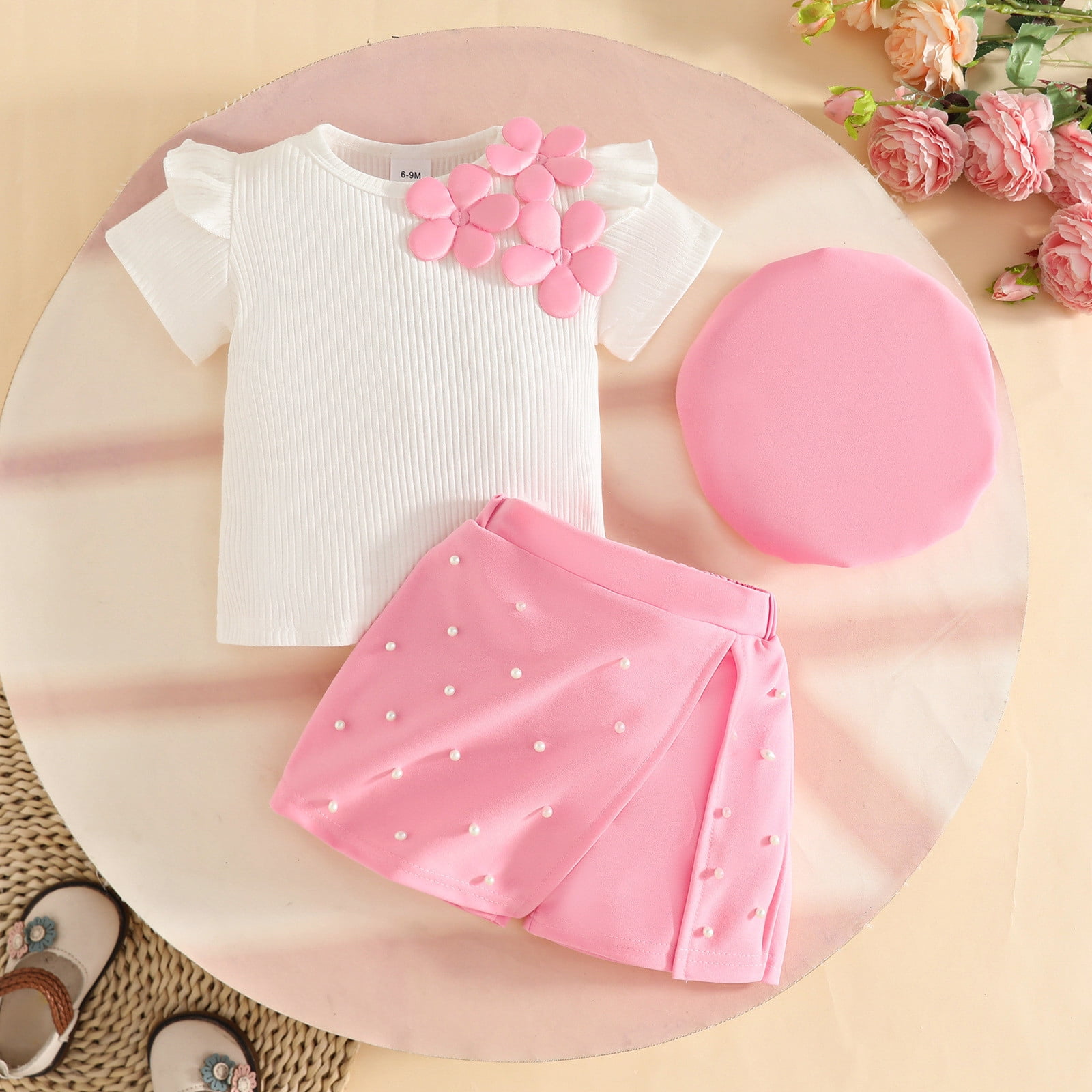 Baby Girls' Cute 0-3Y 3 Piece Outfit, Rib Short Sleeve Top & Beaded ...