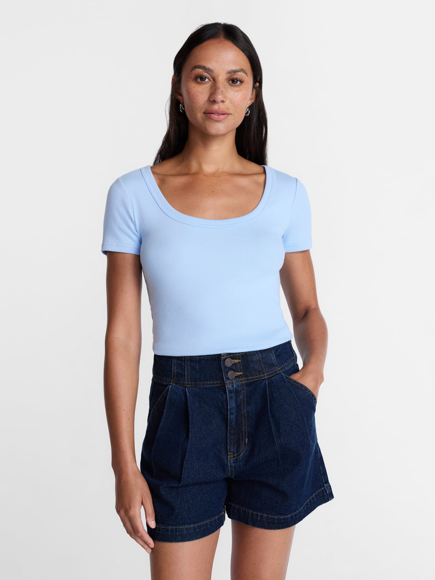 Time and Tru Women's Ribbed Scoop Neck Tee with Short Sleeves, Sizes XS ...