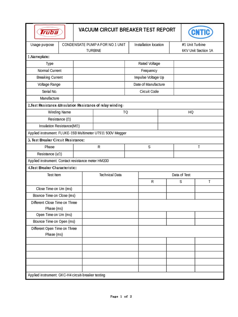 Vacuum Circuit Breaker Test Report: 1.nameplate | PDF