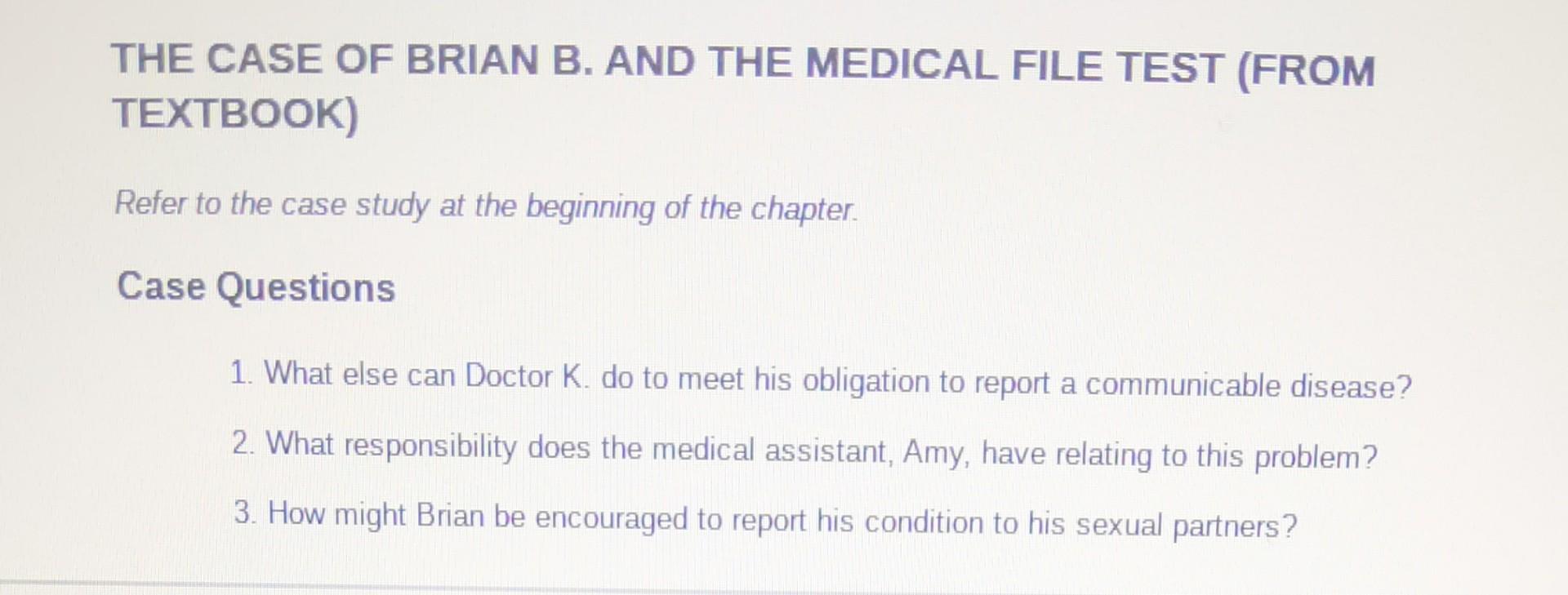 THE CASE OF BRIAN B. AND THE MEDICAL FILE TEST (FROM | Chegg.com