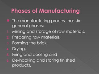 Manufacturing of bricks for masonry construction method and process | PPTX
