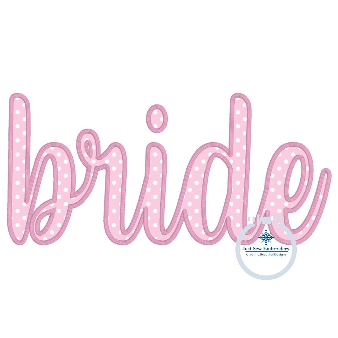 Bride Applique Embroidery Script Design With Satin Edge Stitch in Two ...