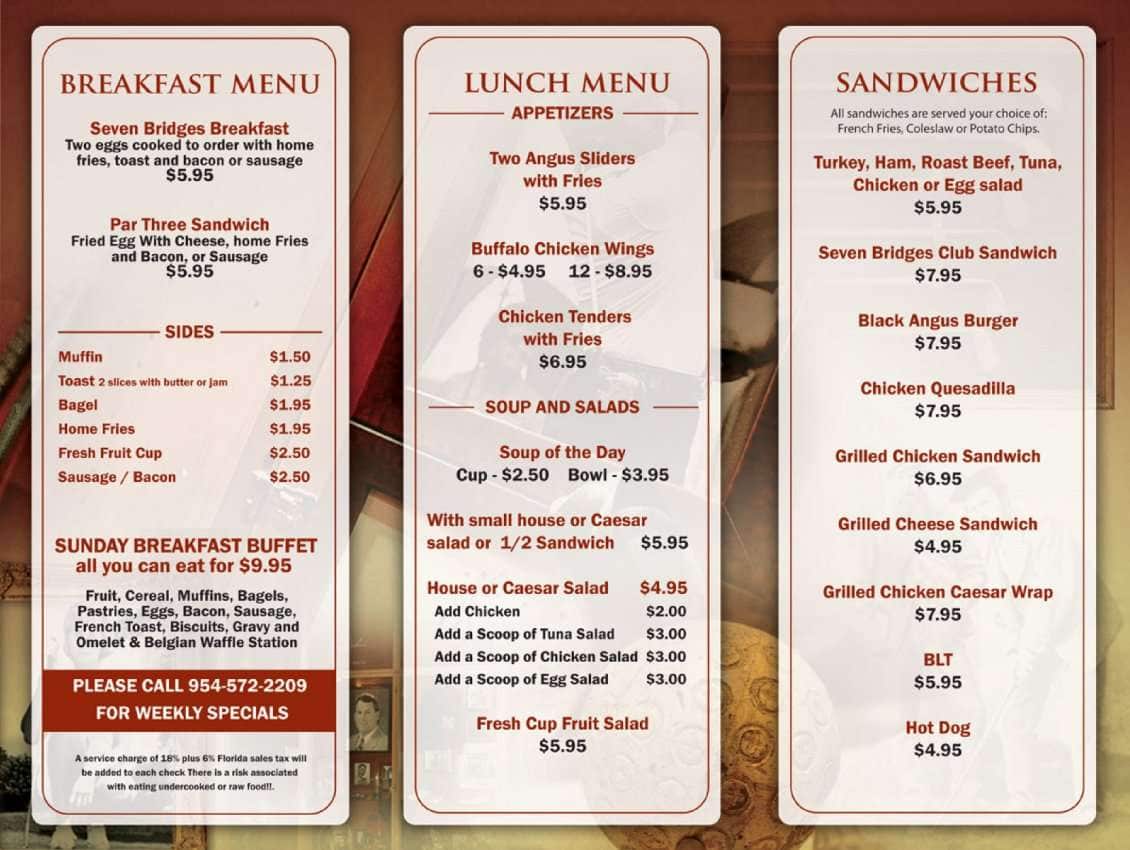 Menu at The Bridges at Springtree Golf Club, Sunrise