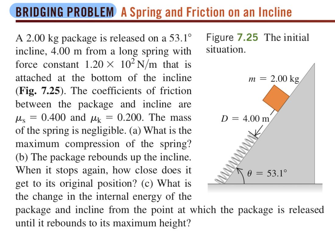 Solved BRIDGING PROBLEM A Spring and Friction on an Incline | Chegg.com
