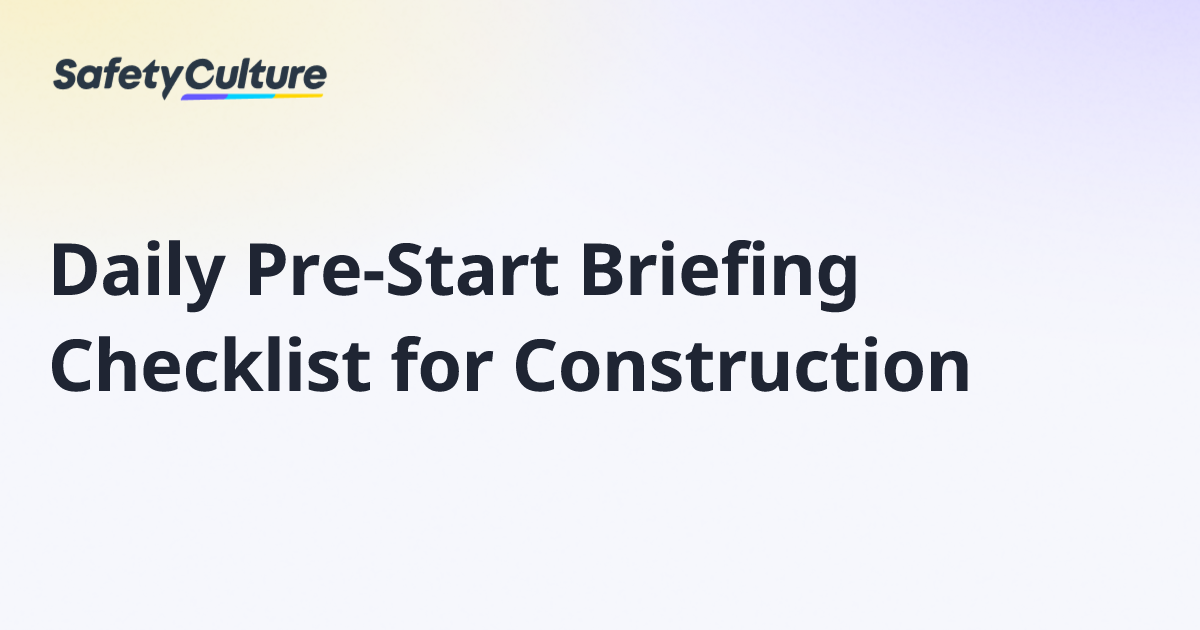 Daily Pre-Start Briefing Checklist for Construction | Free Template
