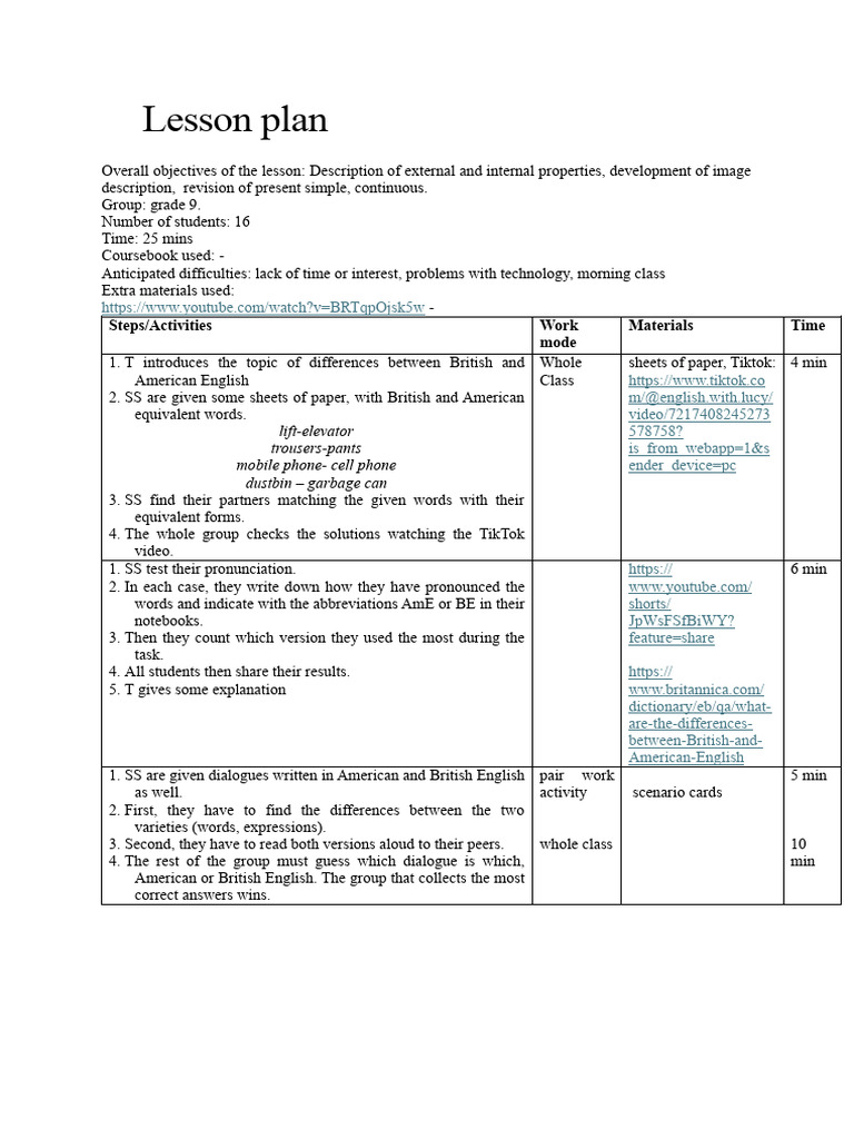 American English vs. British English - Lesson Plan 2 | PDF ...