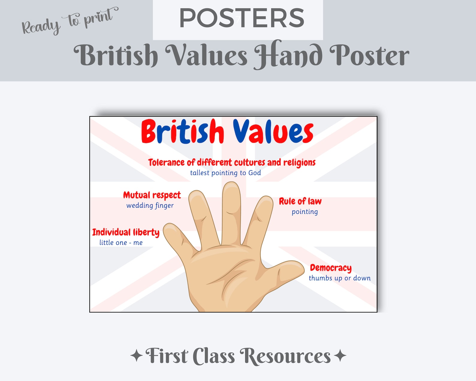 British Values Hand Poster, Democracy, Individual Liberty, Rule of Law ...