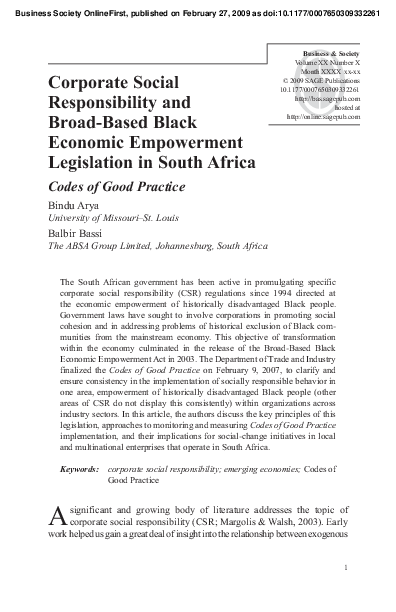 (PDF) Corporate Social Responsibility and Broad-Based Black Economic ...